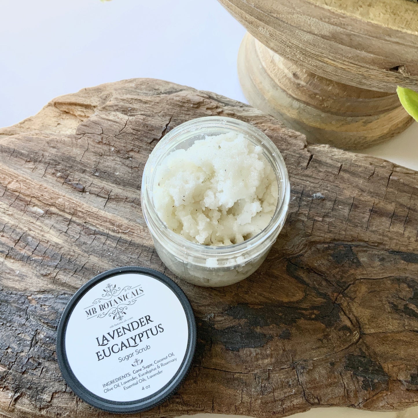 All natural mild, exfoliating sugar scrub for face and body with Lavender and Eucalyptus essential oils.